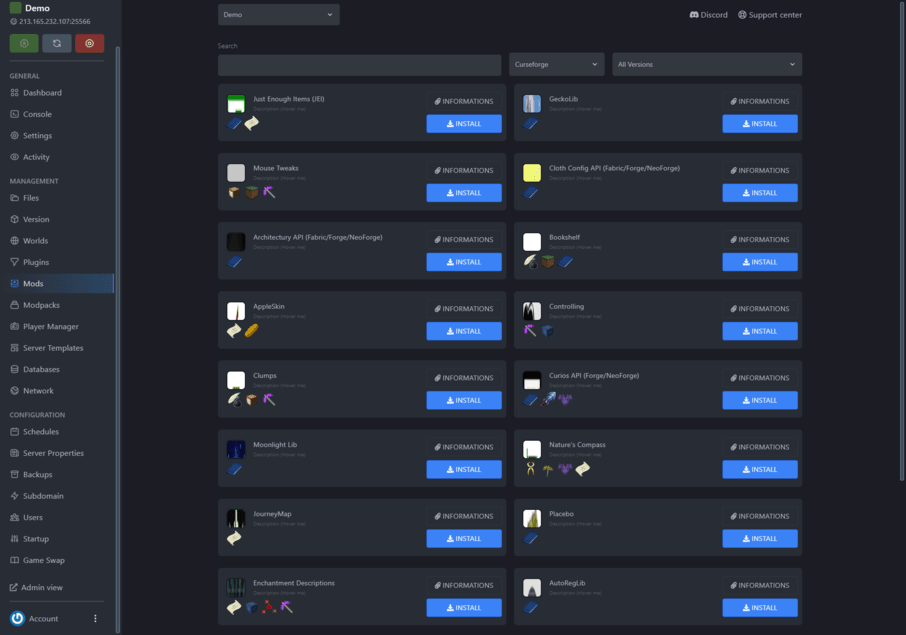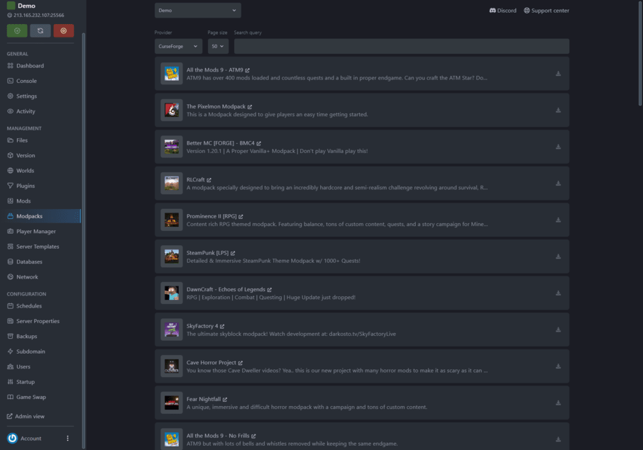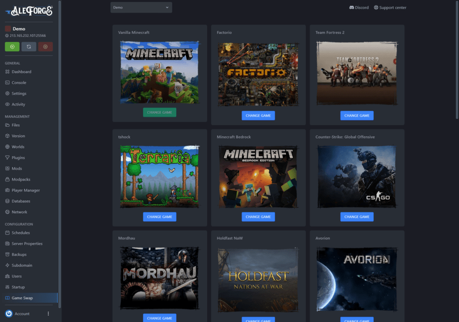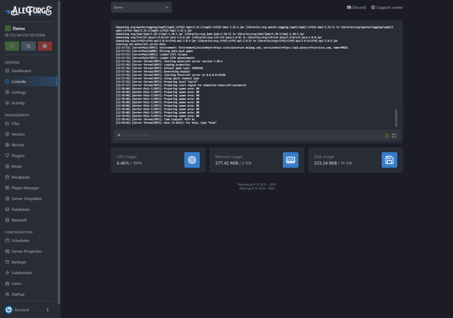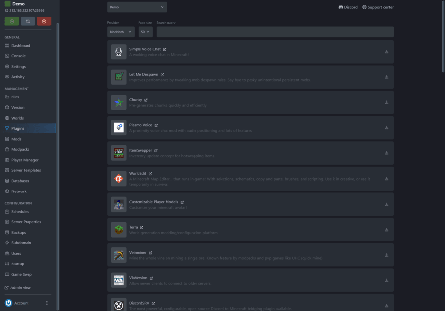 Whether you're running a Minecraft server with complex modpacks or managing multiple Terraria worlds, our control panel simplifies even the most advanced server administration tasks.